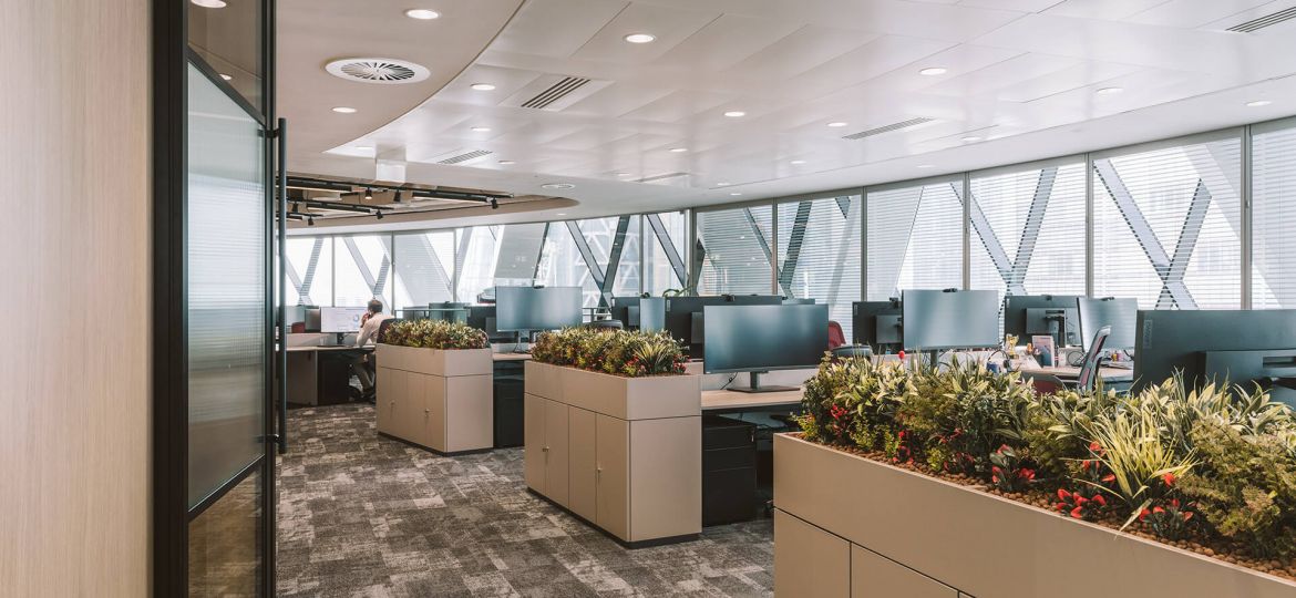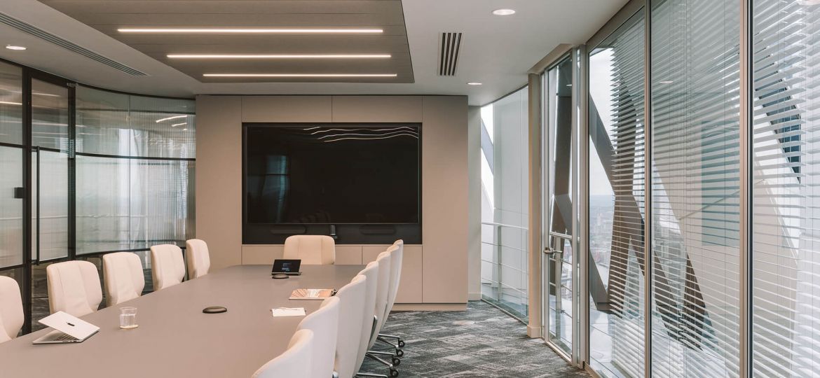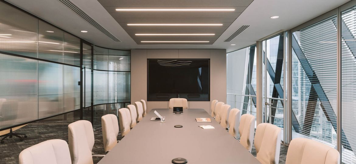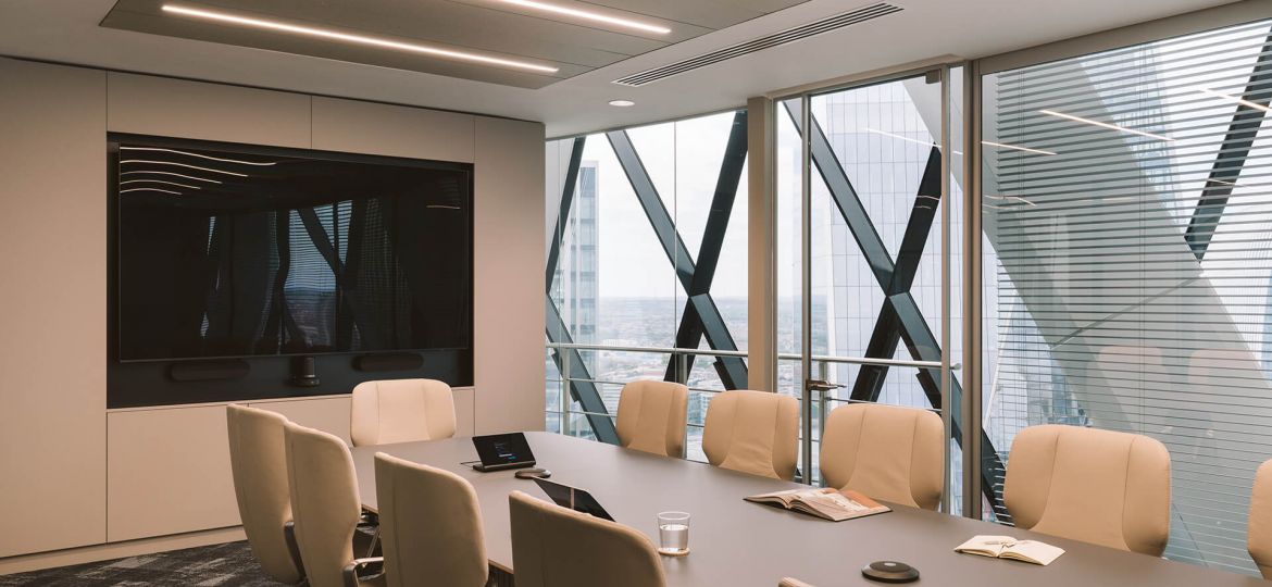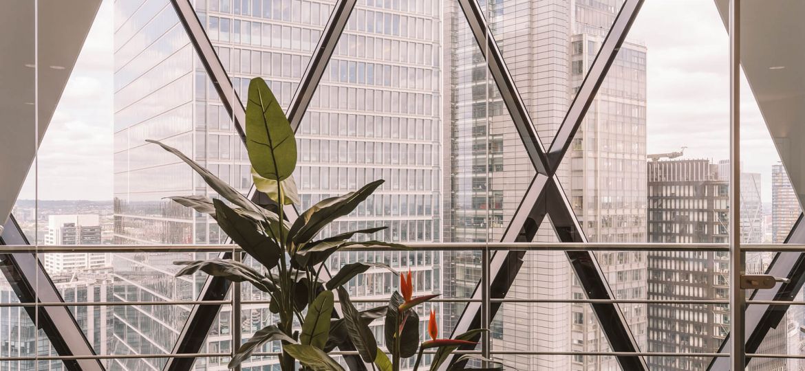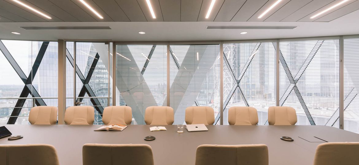 Skuld is an international marine insurance mutual head quartered in Oslo, Norway that specializes in protection and indemnity insurance and marine insurance. They had a London office base on Lime Street, in the heart of the City that was restricted in size, with a narrow reception and meeting room suite. Skuld wanted to move to a larger space to accommodate an increase in workforce and also offer a more enhanced client experience befitting of their progressive status. work.place.create worked with the design and build contractor Interactive Space to test fit a number of floor plates within The City to find a space that best met the client’s needs, one that would also off that ‘wow’ factor for visitors. The final selected location was the 30th Floor of The Gherkin (30 St Mary Axe).