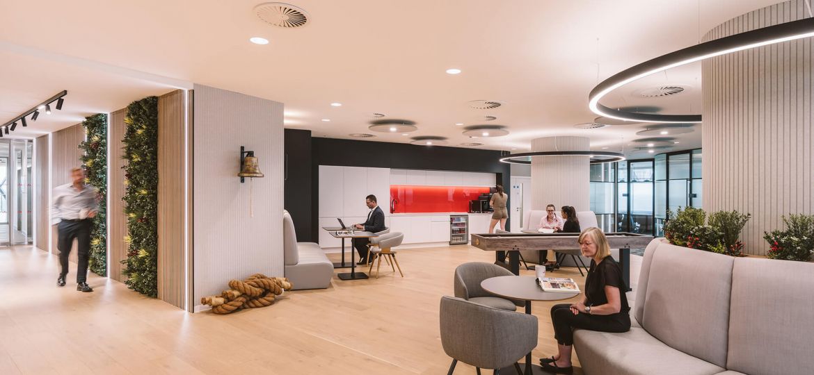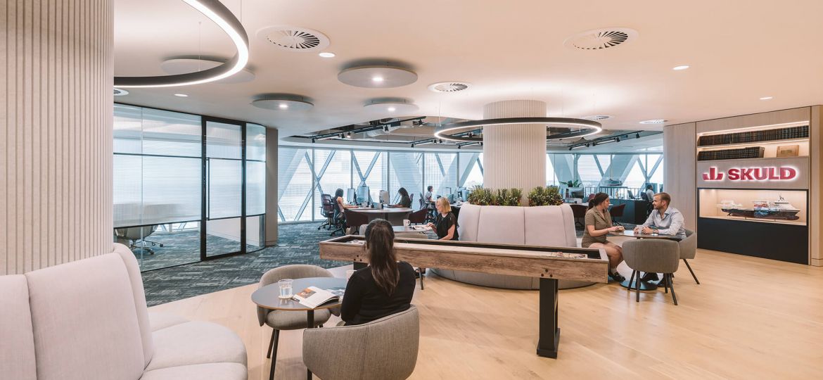 Overall, the new office provides a much more welcoming and open space, improving both the visitor and staff experience. The views of the city provide an impressive backdrop to the breakout lounge and meeting rooms, and the amount of natural daylight is a vast improvement on Skuld’s previous office location, encouraging and allowing for more staff to work from the office and host client meetings.